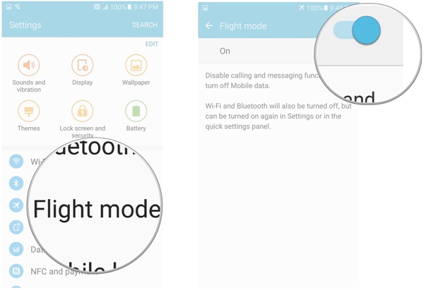 • Und jetzt wieder, schalten Flugzeugmodus / Flight-Modus ausgeschaltet