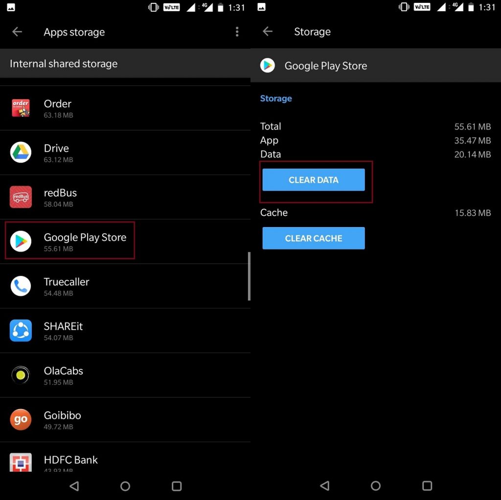 Fixieren 4: Löschen Sie die App-Daten des Google Play Store