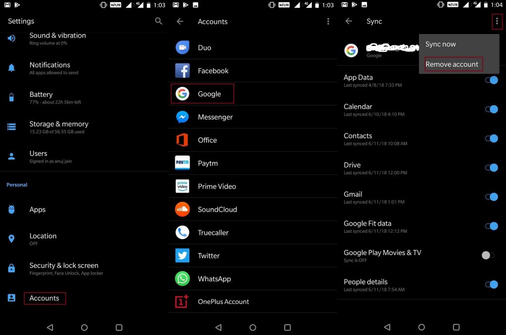Befolgen Sie die Schritte, um das Google-Konto vom Android-Telefon zu entfernen und erneut einzurichten: