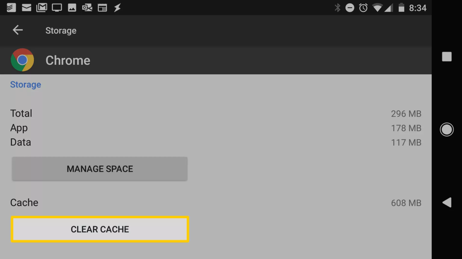 - Wenn Sie darauf klicken, wird die Option “Cache löschen” angezeigt. Klicken Sie darauf
